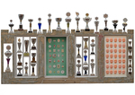 2009Oud raamkozijn, voorzien van twintig laadjes